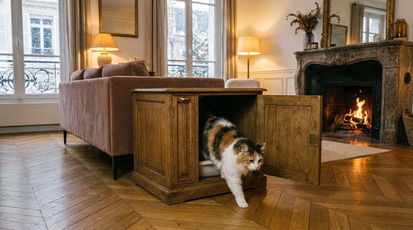 Cacher la litière sans sacrifier la déco : cette maison de toilette passe à 29 € chez Animalis