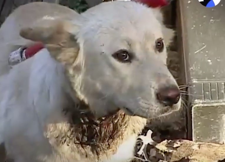 VIDÉO : retrouvé avec un collier enfoncé dans la chair, ce chien a su rester calme avant d’être sauvé