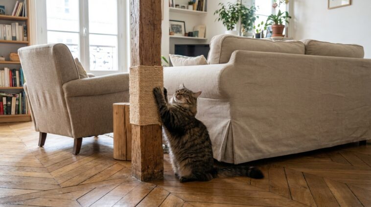 Griffer est un besoin naturel : le chat y trouve un étirement complet, une façon de marquer son territoire et une petite soupape anti-stress. Le problème, c’est que le canapé coche souvent toutes les cases sans le vouloir.