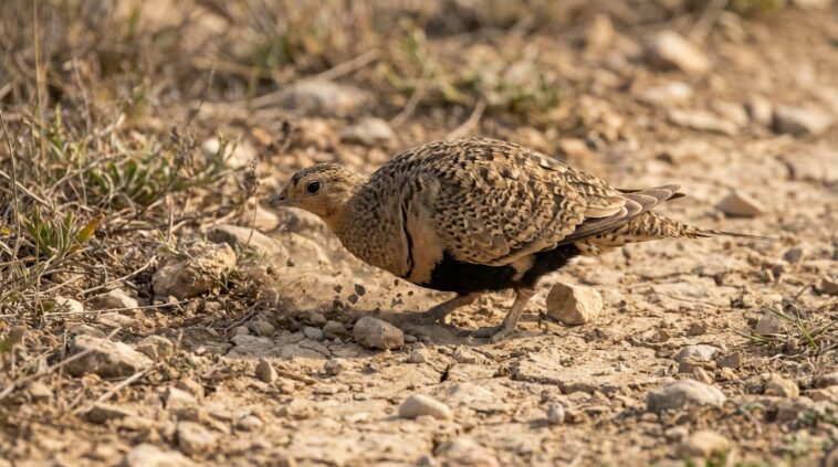 Alors que le printemps s’installe doucement et que la nature reprend ses droits en ce mois de mars, certaines créatures se préparent à affronter des conditions qui décourageraient même les plus aguerris des randonneurs. Imaginez un environnement où l’horizon grésille sous la chaleur, où l’ombre se fait rare et où l’eau n’existe souvent que sous la forme trompeuse d’un mirage. Pourtant, c’est le terrain de prédilection du ganga unibande (Pterocles orientalis), un oiseau d’apparence discrète, présent en Afrique du Nord et en Asie centrale, qui excelle dans l’art de la survie là où la plupart des êtres vivants abandonneraient après quelques heures. Loin de l’image traditionnelle de l’oiseau chantant dans des jardins fleuris, cette espèce déploie une ingéniosité biologique remarquable pour résister aux assauts de la déshydratation.